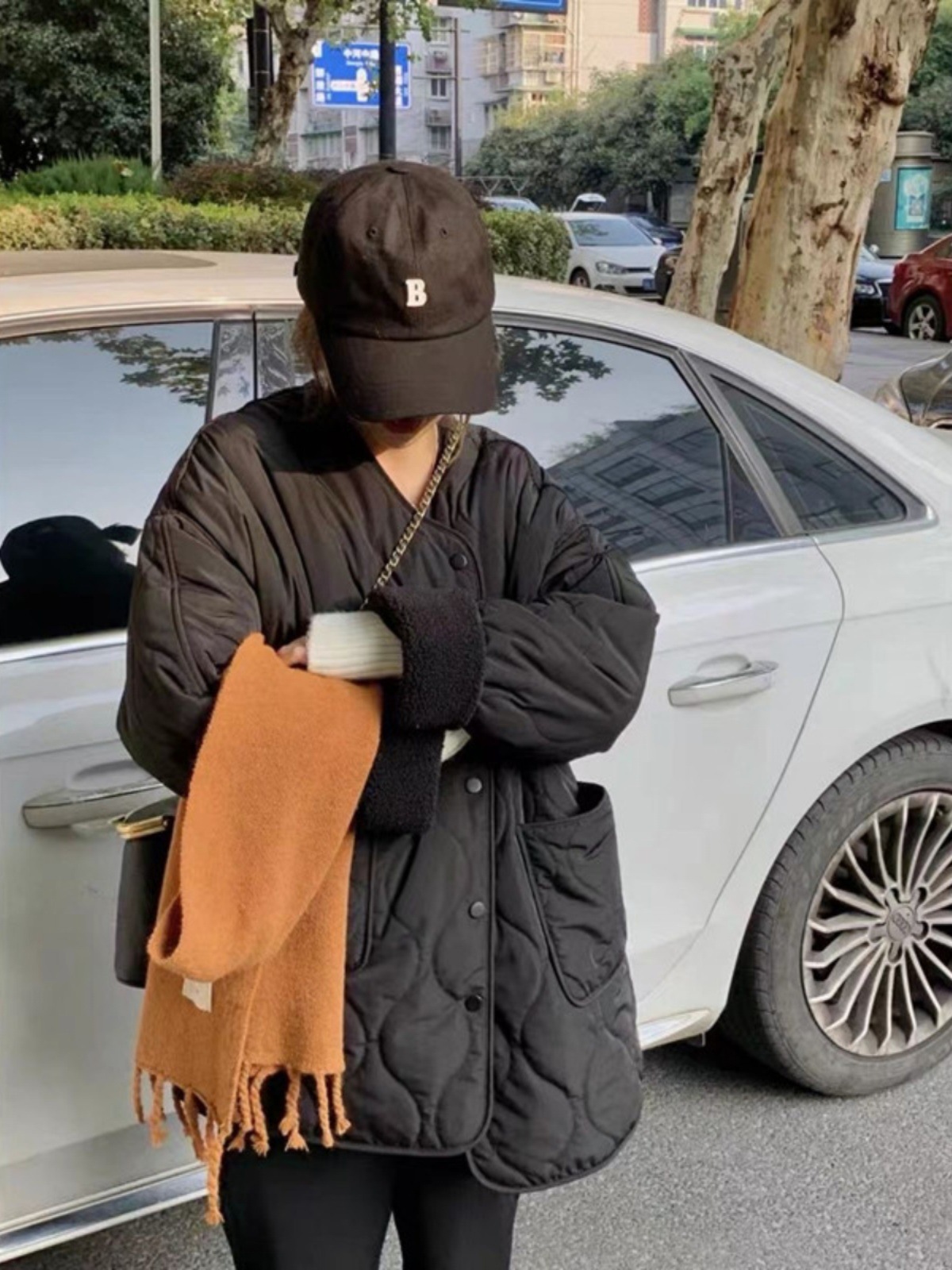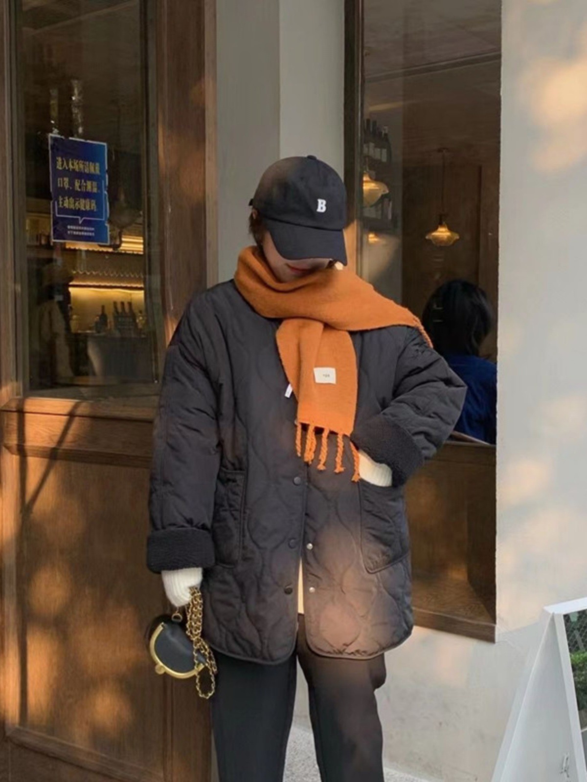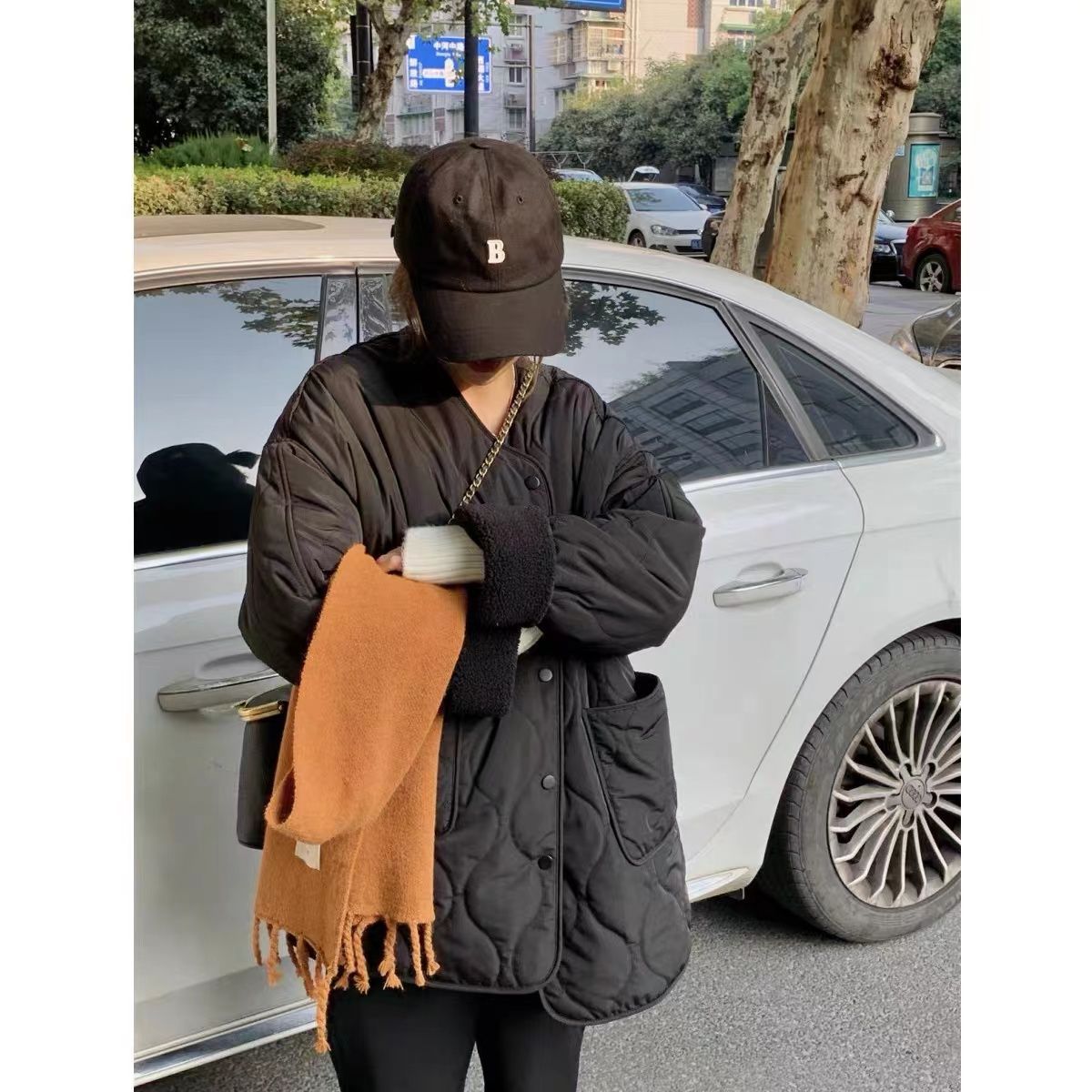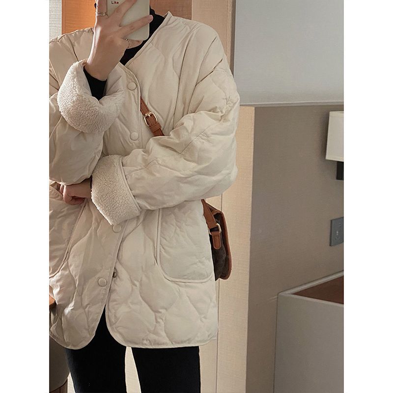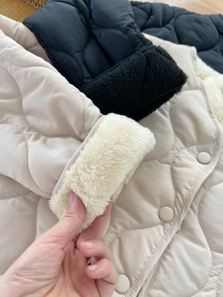 Collarless Fleece Lightweight Korean-style Loose Diamond-pattern Warm Cotton Jacket